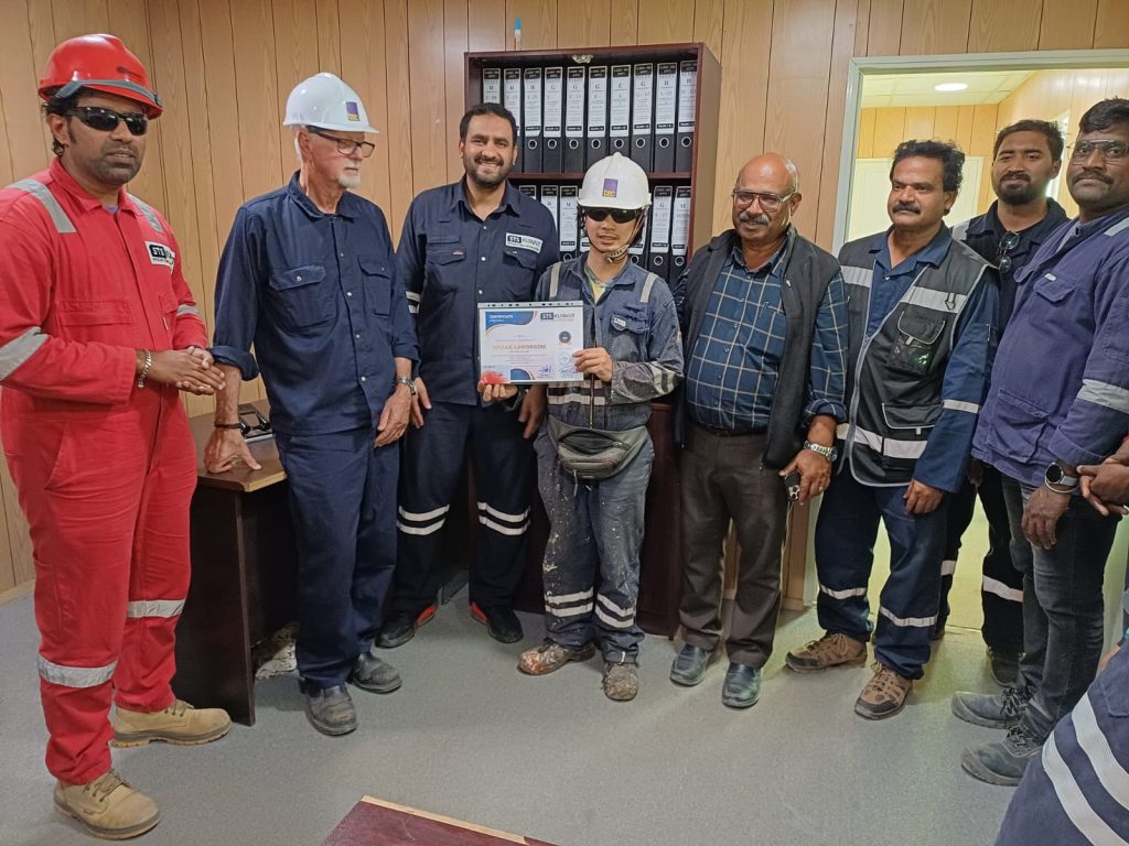 BEC team members recognised by STS Kuwait for outstanding safety performance on the Al-Zour South Project. Strong safety culture in complex industrial environments.